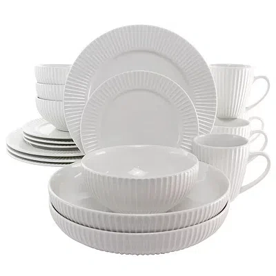 A great looking dishware set is a must for anyone's home. The White Porcelain 18-pc. Textured Dinnerware Set will impress any guest for years to come. Set includes four (4) cups, four (4) small plates, four (4) big plates, four (4) bowls, and two (2) serving bowls Dinnerware measures up to 11.5L x 11.5W x 9H in. each Crafted of porcelain Hues of white Textured edge design Microwave safe Food safe Care: Dishwasher safe. This item is available at Kirklands.com only, not available in stores. Please note: this item cannot be shipped to APO/FPO addresses. | Textured Dinnerware Set, 18 Piece, White, up to 11.5L x 11.5W 9H , Ceramic | Kirkland's Home