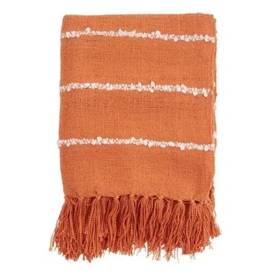 KIRKLAND'S White Striped Fringe Throw Blanket In Orange