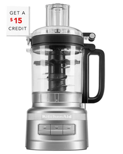 Kitchenaid 9-Cup Food Processor$15 Credit With $15 Credit About The Brand: Culinary Inspiration At Your Fingertips. Color/Finish: Contour Silver Design Details: 9-Cup Food Processor With Chop, Shred, Mince, Slice, Knead, Whip, Mix, Puree Functions; Process Tougher Ingredients And Mince Meat With The Improved Four Blade Multipurpose Blade Design; Turn Cream Into Butter, Whip Cream And More Quickly And Easily With The Included Whisk Accessory; Quickly Knead Dough In The Food Processor With The Included Dough Blade; Store All Blades And Discs Directly In The Bowl; Features An Integrated Cord Wrap In The Food Processor Base; Add Warm Water And 1-2 Drops Of Dish Soap In The Leak-Resistant Bowl To Quickly Clean Bowl And Blades; Make Everything From Fresh Veggies To Cheeses, Doughs, Sauces, Salsa, Baby Food And So Much More; Includes (1) 9 Cup Work Bowl, (1) Lid With 2-In-1 Feed Tube, (1) Multi-Purpose Four Blade, (1) Reversible Slicing/Shredding Disc, (1) Whisk Accessory, (1) Refrigerator Lid, (1) Dough Blade. Measures 9.65In X 15.35In Materials: Plastic Food Safe Made In The Usa Contents Of Set: Food Processor (1) 9 Cup Work Bowl (1) Lid With 2-In-1 Feed Tube (1) Multi-Purpose Four Blade (1) Reversible Slicing/Shredding Disc (1) Whisk Accessory (1) Refrigerator Lid (1) Dough Blade Manual Warranty Your Account Will Be Credited Within 48 Hours After This Item Ships. The Account Credit Is Not Valid For Prior Purchases Or Balances And Must Be Used Within Sixty (60) Calendar Days After The Account Credit Is Deposited Into Your Account (The Account Credit Period). Upon Expiration Of The Applicable Account Credit Period Any Unused Account Credit Will Automatically Expire.