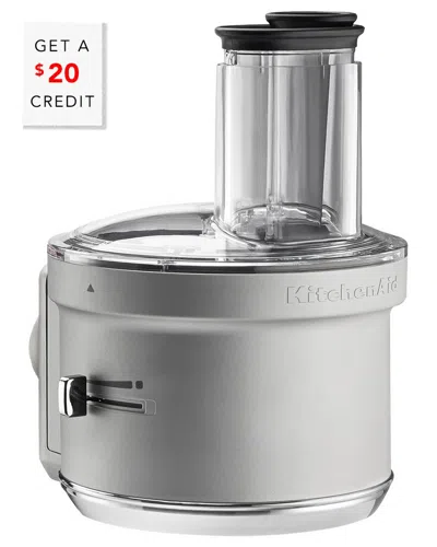 Kitchenaid Food Processor Attachment With Dicing Kit For Stand Mixers$20 Credit With $20 Credit About The Brand: Culinary Inspiration At Your Fingertips. Color/Finish: Silver Design Details: Designed For Use With Kitchenaid Stand Mixers; Easy To Assemble And Connect To The Attachment Hub Of The Stand Mixer; Exactslice System To Slice From Thick To Thin With One Slide Of The Lever; Wide Feed Tube Accommodates Various Sizes Of Food For Less Prep Work; Dice 8 Mm Uniform Cubes; Slice Thick To Thin; Shred Fine To Coarse; Julienne Long, Thin Strips; Designed For Easy Cleanup After Use; Compact Storage Case Designed To Hold Dicing Kit, Plus Slice, Shred And Julienne Blades Measures 6.9In X 9.7In Materials: Plastic Food Safe Imported Contents Of Set: Food Processor Attachment Dicing Kit Slicing Disc Shredding Disc Julienne Disc Storage Case Your Account Will Be Credited Within 48 Hours After This Item Ships. The Account Credit Is Not Valid For Prior Purchases Or Balances And Must Be Used Within Sixty (60) Calendar Days After The Account Credit Is Deposited Into Your Account (The Account Credit Period). Upon Expiration Of The Applicable Account Credit Period Any Unused Account Credit Will Automatically Expire.