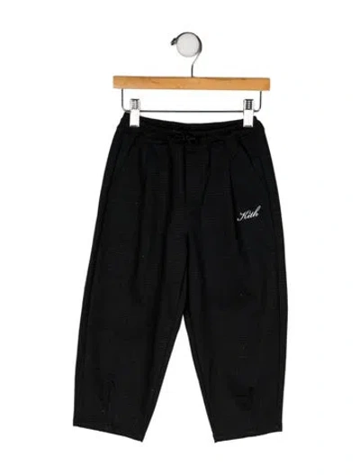 Boys' black KITH pants with embroidred logo at front and drawstring closure at elastic waist. Machine washable. | KITH Pants in Black