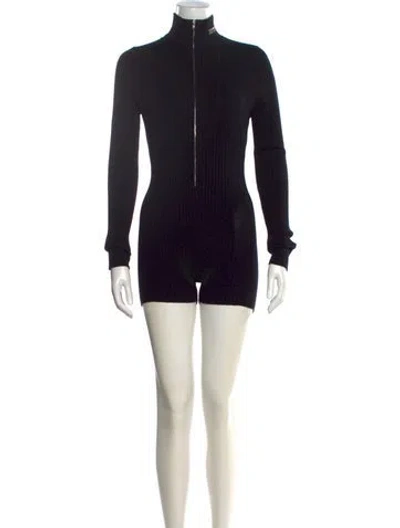 KITH Romper Black Long Sleeve with Turtleneck Concealed Zip Closure at Front Fit: Jumpsuits and Rompers by KITH typically fit true to size. | KITH Turtleneck Romper in Black, Women's L