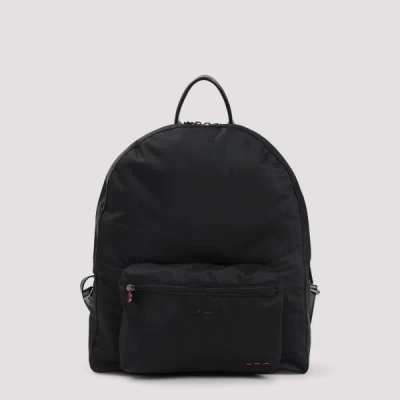 Kiton Black Polyamide Backpack. Crafted from black nylon, black leather details, silver-toned hardware, two-way zip fastening, front zip pocket, metal logo and red stitching detail on the front, top handles, padded back, adjustable shoulder straps.