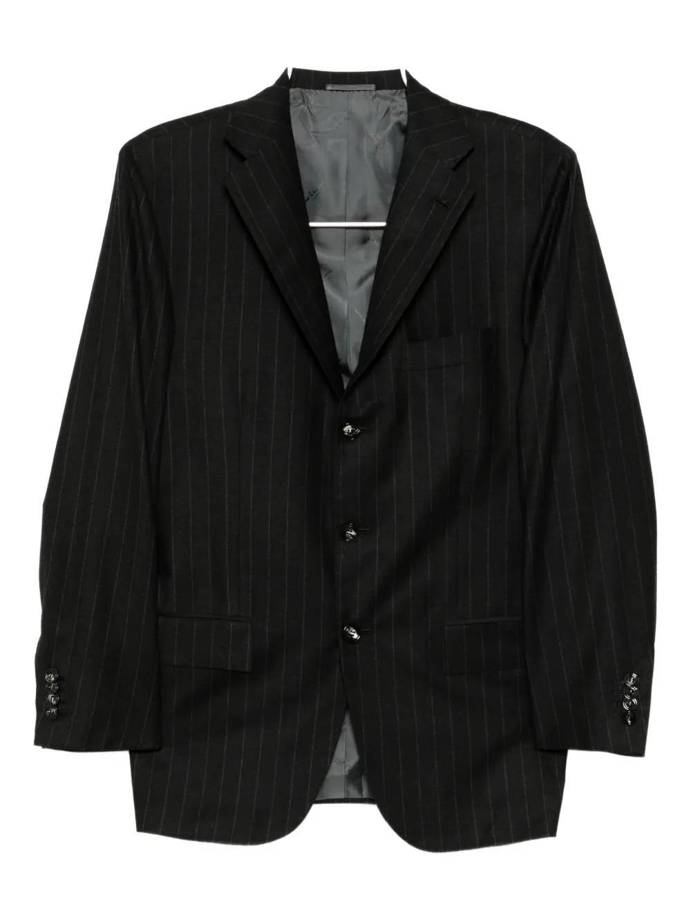 black front button fastening notched lapels chest patch pocket two front flap pockets
