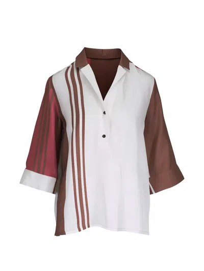white/multicolour striped button fastening turn-down collar three-quarter sleeves loose fit