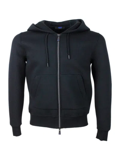 Knt full zip sweatshirt jacket in soft and precious stretch viscose with hood and kangaroo pockets