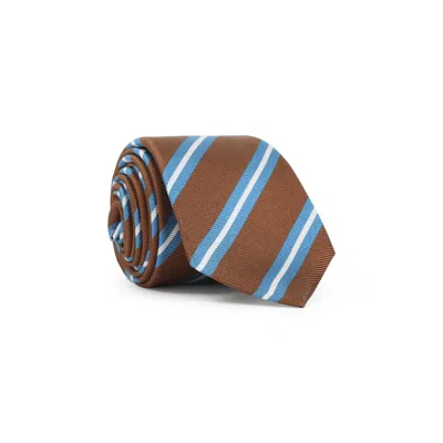 Kiton Tbc Brown Silk Tie. Pure silk tie, brown background, white and blue stripes pattern all-over, fully lining, tonal stitching. Composition: Silk 100%silk Country Of Origin: ItalyBuy this luxury Ties & Bowties today!