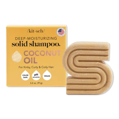 COCONUT OIL DEEP-MSTR SOLID SHAM BAR. Benefits: Infused with nourishing coconut oil to help hydrate and soften dry, damaged strands. Formulated to support a healthier-feeling, more balanced scalp for stronger, revitalized hair. Features: Helps gently smooth knots and tangles for less damage and breakage while brushing. Free of parabens, phthalates, silicones, sulfates & artificial fragrance. pH balanced and safe for color-treated hair. Reduces single-use plastic bottles: Kitsch's concentrated bar formula has the active ingredients equivalent to two 16oz bottles or one 32oz bottle of liquid conditioner. Fragrance: Toasted Vanilla & Macadamia Milk. :