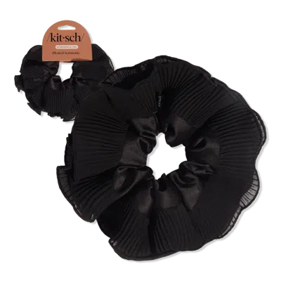 PLEATED SCRUNCHIE - HALLOWEEN BLACK. Benefits: Gentle on strandssecure hold without the pulling or damage. A subtle way to show your Halloween spirit while keeping it chic. A must-have accessory for October outfits and beyond. Great for Halloween outfits or whenever you want to add a touch of elegant texture to your hairstyle.. Features: Made with recycled fabric for a stylish, eco-friendly touch. Dramatic pleats and inky black color for bold, spooky vibes. :