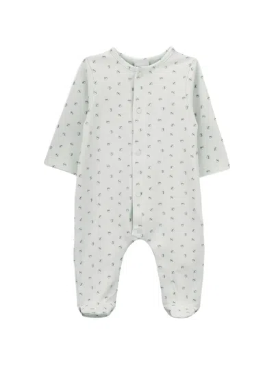 blue/white patterned button fastening long sleeves footed