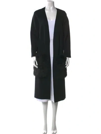 Kobi Halperin Wool Cardigan Black Fur Trim Long Sleeve with Open Front Button Closure at Front Fit: Knitwear by Kobi Halperin typically fit true to size. Unfortunately, due to restrictions, this item may not be eligible for shipping in all areas. | Kobi Halperin Wool Open Front Sweater in Black, Women's XL