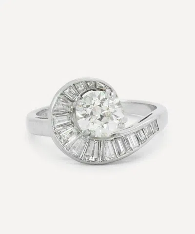 Platinum Old Cut Diamond Swirl Ring In Silver