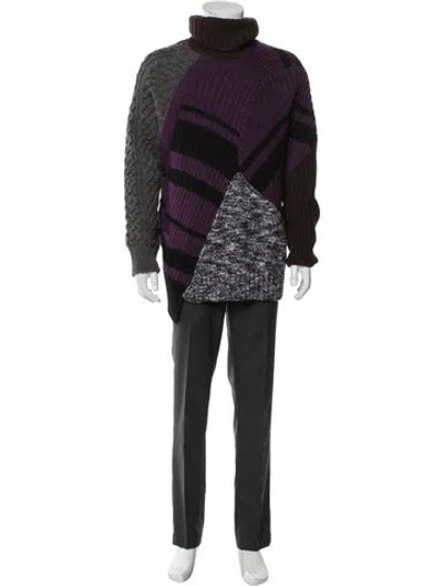 Kolor Wool Pullover Purple Graphic Print Long Sleeve with Turtleneck Fit: Sweaters by Kolor typically fit true to size. | Kolor Wool Graphic Print Pullover in Purple, Men's S