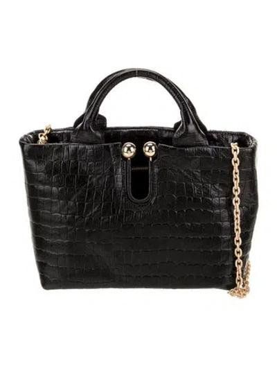 Kooreloo Top Handle Bag Black Embossed Leather Gold-Tone Hardware Twill Lining Open Top | Kooreloo Embossed Leather Top Handle Bag in Black