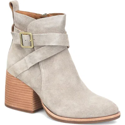 Crisscrossing instep straps lend modern allure to a richly textured bootie framed by a plain toe and stacked block heel. 3" heel 4 1/2" shaft Cushioned footbed Leather upper/textile lining/rubber sole Imported