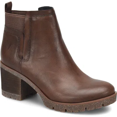 Say hello to the perfect, most versatile boot. The ankle height makes this style easily transition from day to night. Wear them with your favorite skinny jeans and tee for a more laid back look, or pair them with your favorite mini dress and jacket for a night out on the town.Step into tough-chic style with the Korks Women's Elsie Lug Sole Heeled Booties in Dark Brown, a perfect addition to your Boho Chic wardrobe. Crafted from synthetic faux leather, these booties feature a stretchy shaft with elastic gore for a comfortable pull-on fit. Designed with a round toe and a foam-cushioned footbed, they offer high comfort levels for all-day wear. The block heel measures 2.75 inches, providing a lightweight footing with a rubber lug sole for superior traction.
