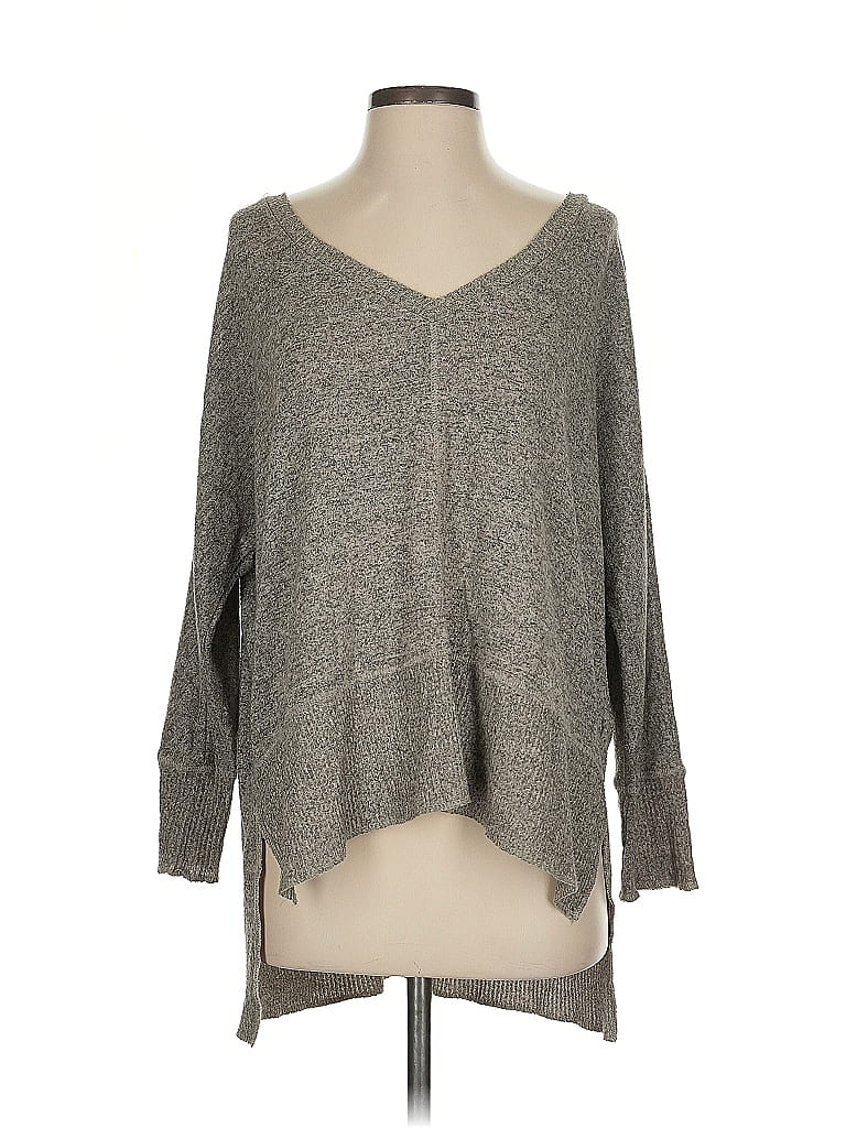 Korye Pullover Sweater, Size: Small. Item Details: Gray, Plunge Neckline, Long Sleeve, Frayed Edges, Women's Tops, Spandex/Rayon/Polyester