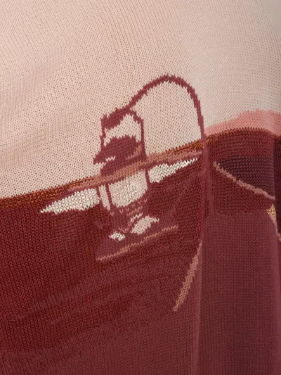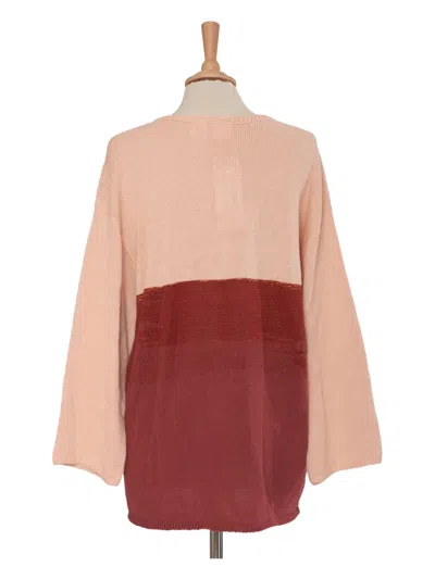 light pink cotton blend knitted construction patterned intarsia knit round neck long sleeves Condition: GOOD. This previously owned and used item is in good condition with minimal signs of use. This may include fading of material or plating and scratches.