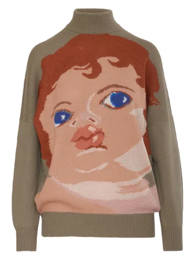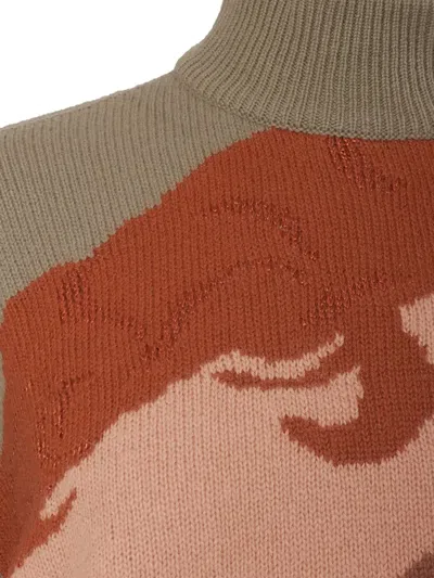 taupe brown wool-cashmere blend patterned intarsia knit high neck long sleeves ribbed hem Condition: GOOD. This previously owned and used item is in good condition with minimal signs of use. This may include fading of material or plating and scratches.