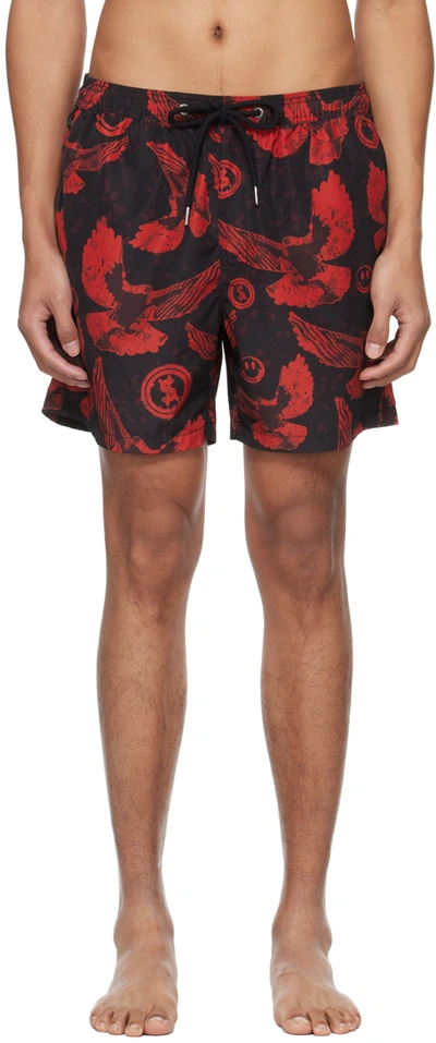 Water-resistant plain-woven polyester shorts. Graphic pattern printed throughout. · Drawstring and logo hardware at elasticized waistband · Three-pocket styling · Logo printed at back leg · Partial mesh lining Supplier color: Assorted