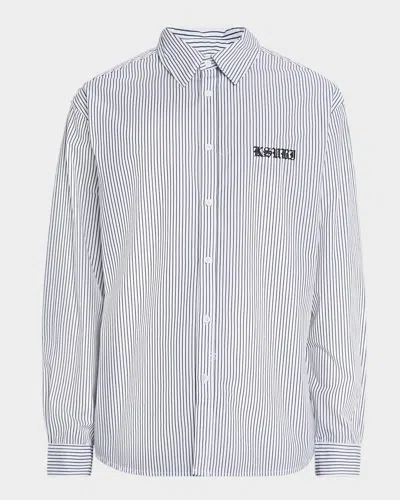 This striped shirt by Ksubi is printed with signature graphics on the chest and back Spread collar; button front Long sleeves; button cuffs Relaxed fit Shirttail hem Cotton Machine wash cold, line dry, cool iron on reverse, do not dry clean Imported