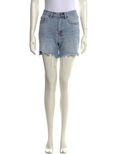 Ksubi Shorts Blue High-Rise Light Wash with Raw-Edge Trim Slit Pockets Zip & Button Closure Fit: Shorts by Ksubi typically fit true to size. | Ksubi Mini Shorts in Blue, Women's US 27 | S