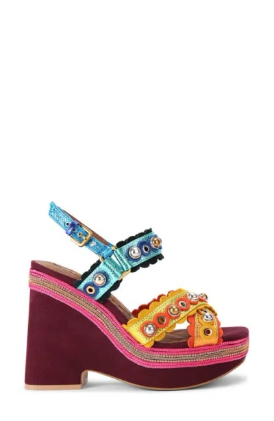 London Scalloped Stud Wedge Platform Sandal In Multi
