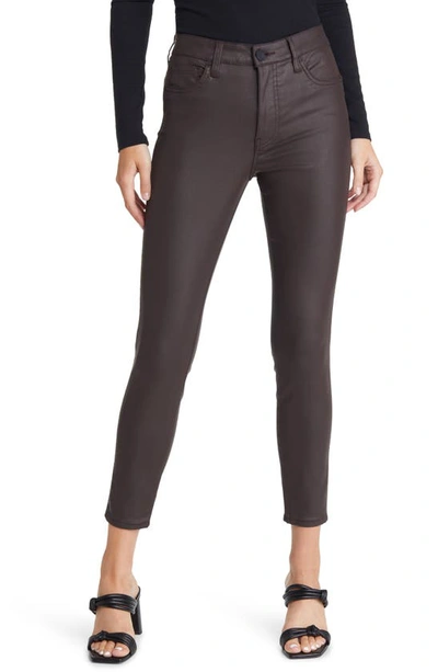 Donna Fab Ab Coated High Waist Ankle Skinny Jeans In Chocolate