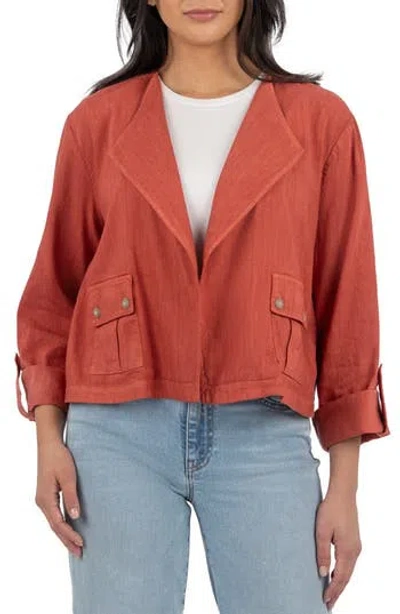 KUT FROM THE KLOTH Karie Open Front Linen Blend Jacket In Brown