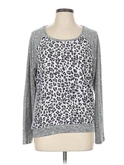 Kut from the Kloth Pullover Sweater, Size: Large. Item Details: Gray, Animal Print Pattern, Scoop Neck, Long Sleeve, Women's Tops, 100% Rayon