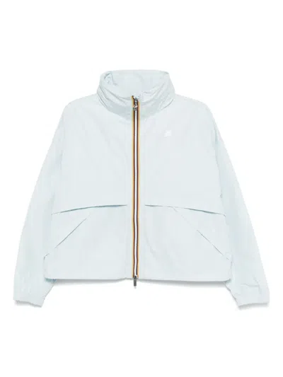 light blue front two-way zip fastening water-repellent detachable hood two side slash pockets