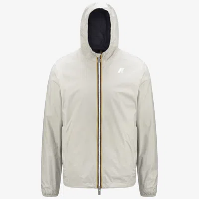 Item Color: Beige and Blue | Blue and Beige | Reversible Waterproof Jacket | Jake is a men's short jacket with a packable and reversible design, made of recycled material with one side in coated nylon and one side in smooth nylon in a contrasting color | The model is designed with the utmost attention to detail: the seams are heat-taped, while the edges are finished with elastic inserts to provide a snug, fast fit | The hood, pockets and zipper closure add functional details to a must-have mid-season pattern | Waterproof, windproof nylon outer fabric, breathable | Water-repellent nylon inner fabric | Reversible | Heat-taped seams | Non-detachable hood adjustable with elastic cord and cord stopper | Adjustable body hem with elastic cord and cord stopper | Zip closure | Elastic cuffs2 zipper pockets2 snap button pockets | Slim fit | White silicone applique logo | Composition: 100% Recycled Nylon