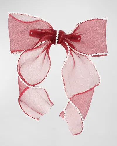 Ruby Sheer Pearly Bow Barrette In Maroon