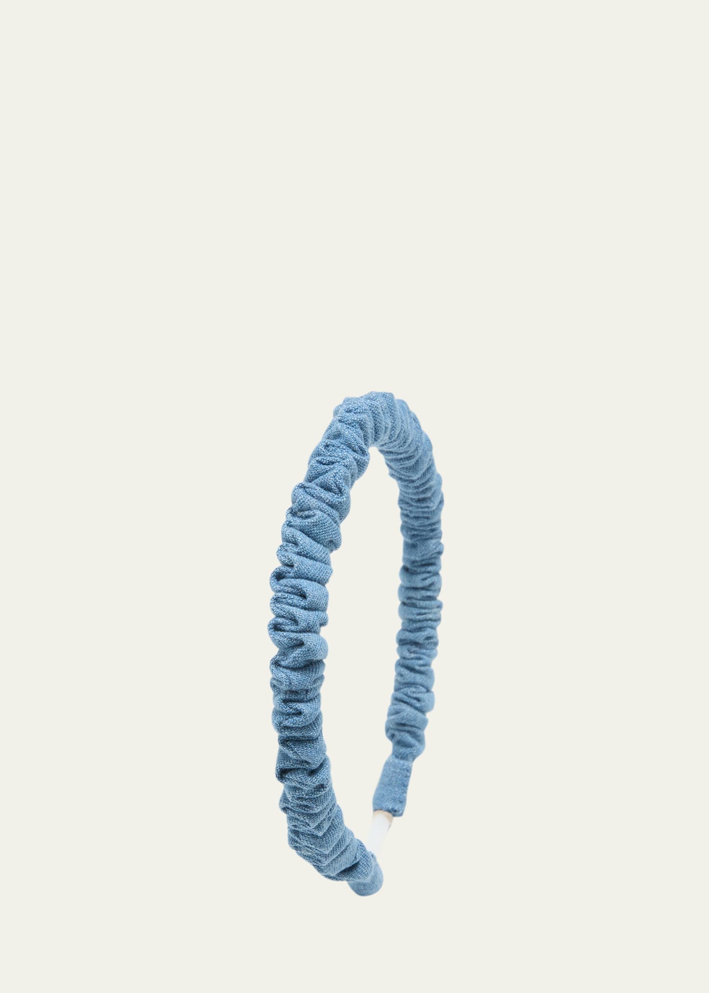 L. Erickson USA "Mini Medici" denim ruched headband in cotton One size fits most Made in USA