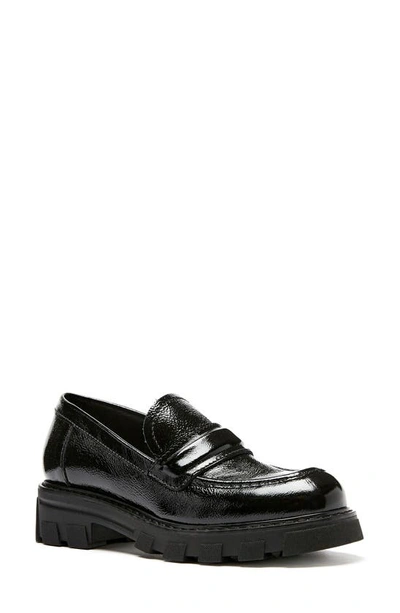 LA CANADIENNE Douglas Waterproof Platform Loafer In Black Crinkle Patent