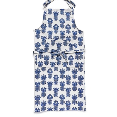 La DoubleJ Aprons gend Aprons Pineapple Blu. You’ll look so good no one will care if you can cook! Our Apron comes in a heavy duty canvas-like cotton with a simple standard apron shape: a square neckline, tie-up straps around the neck and another tie around the waist to fit all shapes and sizes! This new Pineapple Blu print style has a tablecloth to match, too, if you’re into that kinda thing. <li>Heavy duty cotton from Lake Como</li><li>Ties around the neck and waist</li><li>Very adjustable - one size fits all</li><li>Wide front pocket</li><li>100% made in Italy</li>. Cotton. . 100% Cotton.