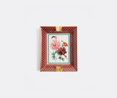 Created in collaboration with surrealist artist Beto Val, the 'Birdbloom' ashtray by La DoubleJ encapsulates the maximalist style of the Milanese brand. Doubling as an incense holder, for cone incense and sage bundles, the multicolor design features a dreamlike scene handpainted on porcelain. Tones of pink and red dominate as peonies erupt into a flamingo and a curlew. A diamond geometric pattern ornaments a deep bordeaux frame. With 18k gilt trimming and grooves, this enchanting ashtray can be displayed alongside other pieces from the 'Fantastic Creatures' collection. Dishwasher safe.
