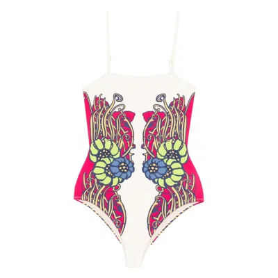 pink floral print thin straps scoop neck low back Be mindful to try on swimwear over your own garments.
