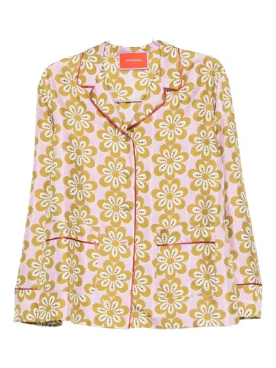 LA DOUBLEJ Floral-print Piped-trim Shirt In Neutral