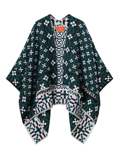 LA DOUBLEJ Geometric-pattern Cape In Green