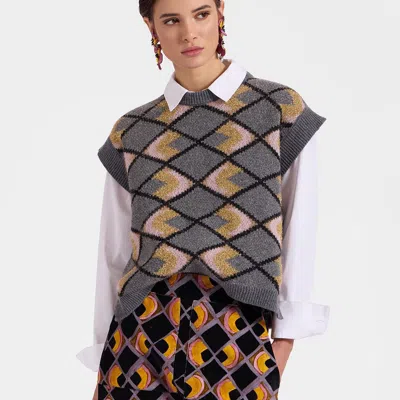 La DoubleJ Knitwear gend Half-Light Gilet Half-Light Grey. What statement sweater feels better than one crafted from Italian wool? Our Half Light Gilet is made in Italy from a texture-fest cashmere and mohair blend and is designed to bring high vibes to winter wardrobes in these happy hues. With a mock neck and slits on the hips, it’s a stylist's dream with its mannish oversized fit that brings plenty of swag to pretty print dresses or black turtlenecks alike.
