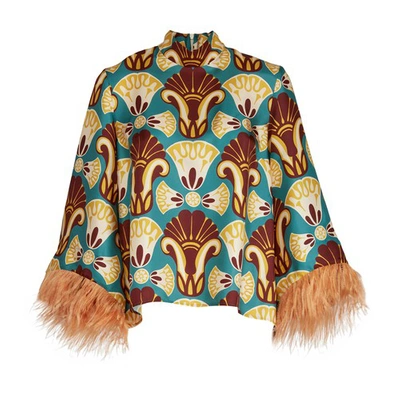 One glance and you'll know this 'Make an Exit' top is La DoubleJ - the vibrant pattern and feathered trims are clear giveaways. It's been made in Italy from silk-twill that has a slight sheen and fluid quality. Take styling notes from the label and pair yours with blue jeans or the matching pants.- For Women.