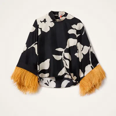 La DoubleJ Shirts & Tops gend Make An Exit Top Winter Jasmine. If a top could be a tease, this one would be it. Deceptively demure in the front with a high neck and easy A-line shape through the body, it’s the back of this beauty that truly wows, with a cape-like high-low back that floats as you turn. This silk twill iteration with oversized, feather-trimmed bell sleeves has date night drama written all over it. Throw it under a gilet or our Folk Jacket for bohemian flare, or with our Milano Skirt for a super chic silhouette.