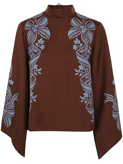 La DoubleJ Shirts & Tops Women Make An Exit Top Signoria Placée Brown. If a top could be a tease, this one would be it. Deceptively demure in the front with a high neck and easy A-line shape through the body, it’s the back of this beauty that truly wows, with a cape-like high-low back that floats as you turn. This silk twill iteration with a hand-placed print has date night drama written all over it. Throw it under a gilet or our Folk Jacket for bohemian flare, or with our Milano Skirt for a super chic silhouette.