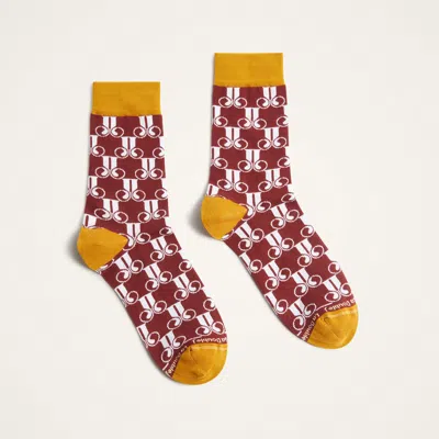 La DoubleJ Fall 2025: VIP Early Access gend All Time Socks La DoubleJ Monogram Bordeaux. Didn't we promise we would wrap you in joy from head-to-toe? Meet your feet's new besties, the All Time Socks delivered in our delicious Italian cotton with just the right amount of stretch, adorned with our punchy J.J. monogram in two-tone hues. We love to let them shine with brogues and a skirt, but they're just as dramatic peeking out from under a Hendrix Pant hem.