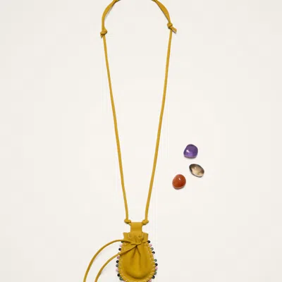 La DoubleJ Bags & Pochettes gend Power Pouch With Crystals Solid Yellow. Who knew something so "piccolo" could hold so much power?! While our colorful clothes and dazzling prints already work overtime to raise your vibration, we wanted to go a step further and offer an item that's pure purpose is to elevate and activate your energy. This stunning pouch, crafted by Italian artisans in 100% leather is designed to hold your most prized possessions, which, in our case are the crystals carefully sourced by Mayra Hernandez of IXIM. Curated specifically to activate different energies for different moments - the consciousness-cultivating Amethyst, the courage-activating Carnelian and the grounding Smokey Quartz - this might be our most vibration-raising item to date. Crafted from 100% Italian leather, with elegant gold disc adornments all around this is more than a mere aesthetic item - this is style with soul, sister.