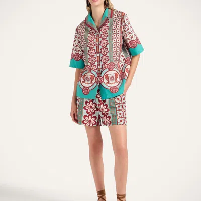 La DoubleJ High Summer 2025: VIP Early Access gend Pull-Up Shorts Pagoda Placée Rust. Step right up for your prettiest pins. Cut in bouncy cotton poplin with an elasticated waistband, these beauties are a lesson in casual class. Keep it classic with a simple white tank, or double it up with the matching Bowling Shirt for your easiest summer look that’ll slide from poolside to dance floor in a snap. This molto elegante print is placed by hand to look perfect from every angle.