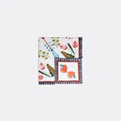 Allow the bold and playful world of La DoubleJ to fully envelope the table with the brand's ever-expanding collection of tablecloths. Here, the 'White Turning Tulips' motif — in which bundles of pink tulips converge with palms, vines and concealed eyes come together against a white background — plays out across 100% Italian linen for a ready made centerpiece. Due to the handmade nature of the fabric, this medium tablecloth features some small but charming irregularities, such as knots in the yarn.