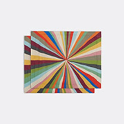 This set of two tablemats brings La DoubleJ's signature vibrancy to the table via a seamless combination of high quality fabric and bold motifs. Here, stitched borders, subtle padding and a LDJ logo are brought together with the brand's 'Rainbow Rays' motif, a beautifully bold spectrum of multicolored stripes. Presented as a pair, the 100% linen tablemats are made in Italy and may include some small, natural irregularities, such as small knots in the yarn.