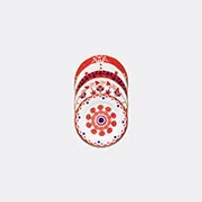 Produced by Italian ceramic giants Ancap for La DoubleJ, the 'Transylvania Mix' set of dessert plates is inspired by gallerist and collector Miki Von Bartha's vintage collection of Transylvanian textiles and ceramics. Dishwasher safe and featuring bold red, white and blue designs, this colourful set can be paired with other plates from the series for a maximalist explosion of pattern and pigment at the dining table.